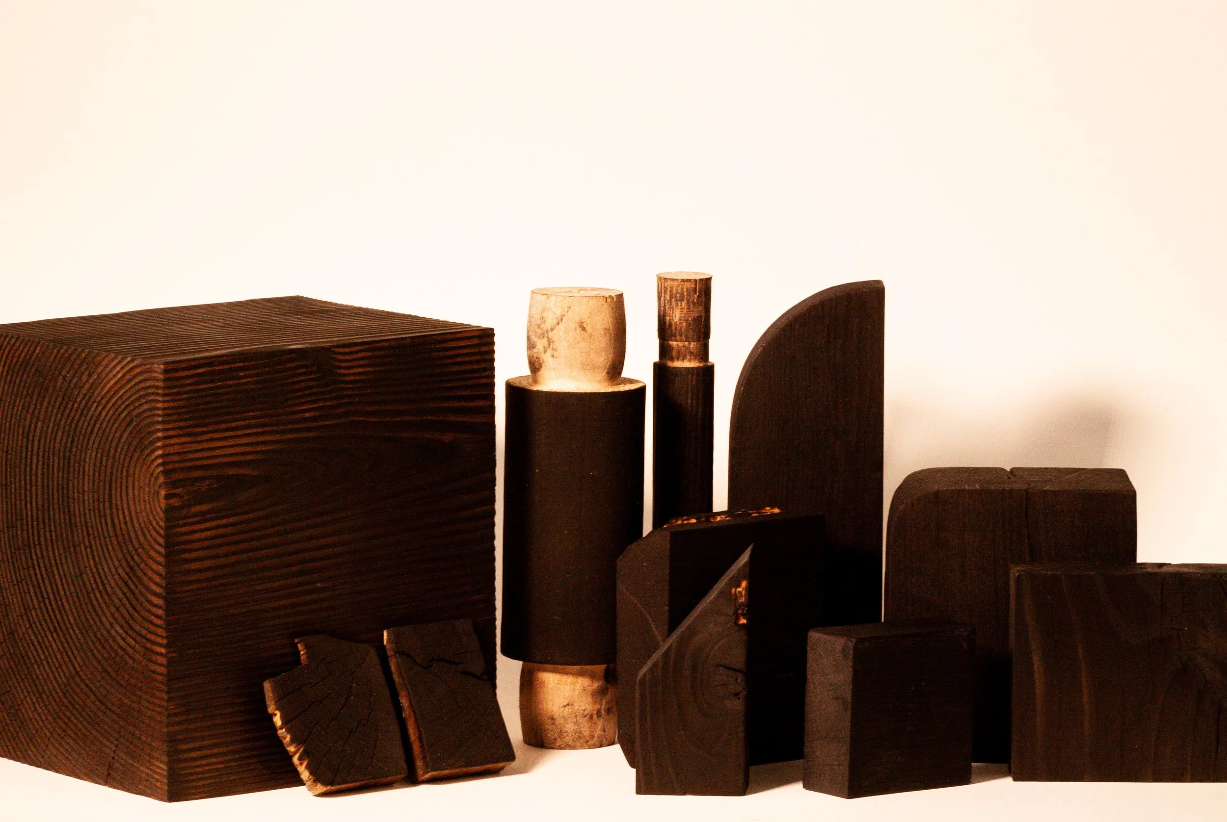 Employing a unique methodology involving wood, fire, ink, and paper, Craig materializes two-dimensional representations of wood grains through a relief printing process. The wooden printing blocks are gently burned in order to remove the softer spring growth within each annular ring, providing the texture necessary for direct relief printing. Once ink is applied, the paper is folded across the edges of the blocks. Any imprints left behind by industrial processes or everyday usage on the surface of the wood are captured.