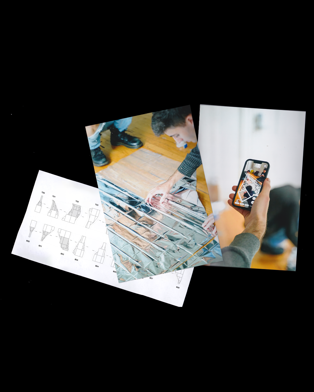 We suggest that all design explorations that acknowledge existing context should happen in-situ. As such, the modeling processes for this research utilized accessible technologies and had fabrication novices in mind. Portable tools—smartphones, scissors, tape, and cheap off the shelf materials like mylar and painter’s tarp—made for rapid ad-hoc production of low-pressure inflatables. An augmented reality app guided users through the modeling process and provided real-time fabrication instructions using a custom patterning algorithm designed to minimize material offcut. These novel fabrication techniques were tested in a two-day workshop, where students used AR modeling, patterning, and fabrication to create a 150m2 (≈1615ft2) full-scale demonstration with only ~3kg of material.